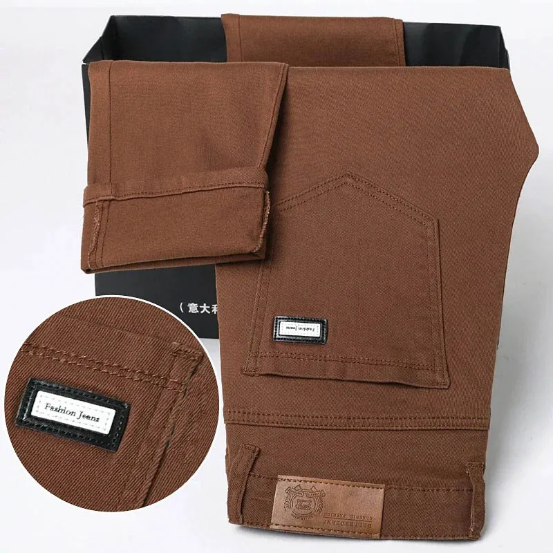 2025 klassischen Stil männer Slim Kaffee Schwarz Jeans Hohe Qualität Business Casual High ...