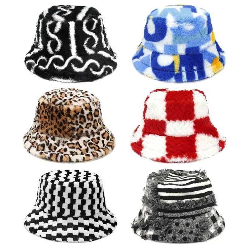 Winter Eimer Hüte Frauen Mode Druck Damen Warme Panama Hut Wolle Weiche Samt Verdickt Fell Kani...