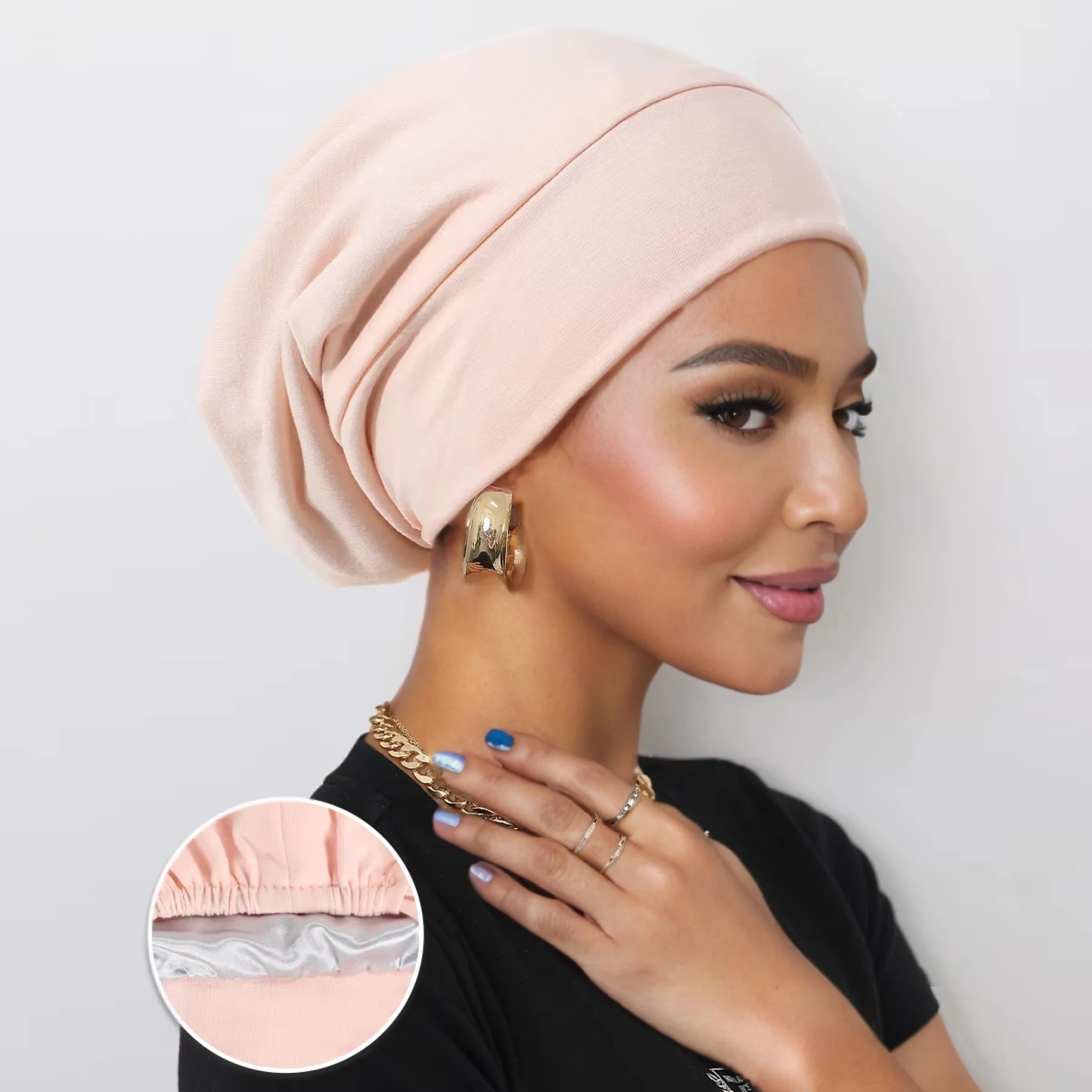 Modale Baumwolle, weiches Satin-Futter, muslimischer Turban-Hut, Damen-Schlafmütze, Krebs-Chemo...