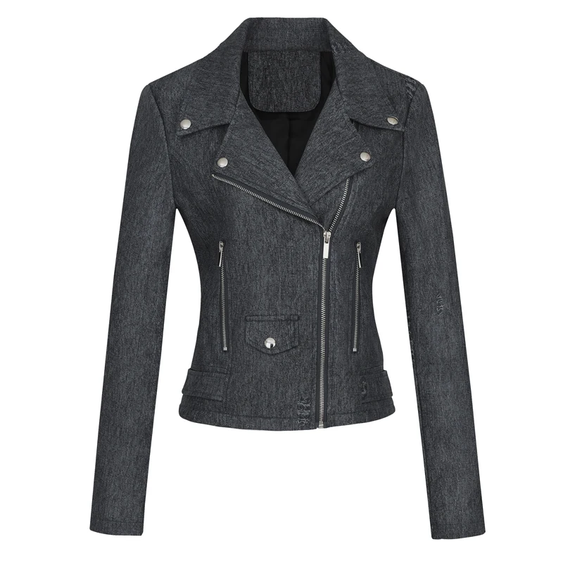 Frühling und Herbst Kreative Denim Muster Pu Material Lederjacke Modische Damen Lederjacke Lede...