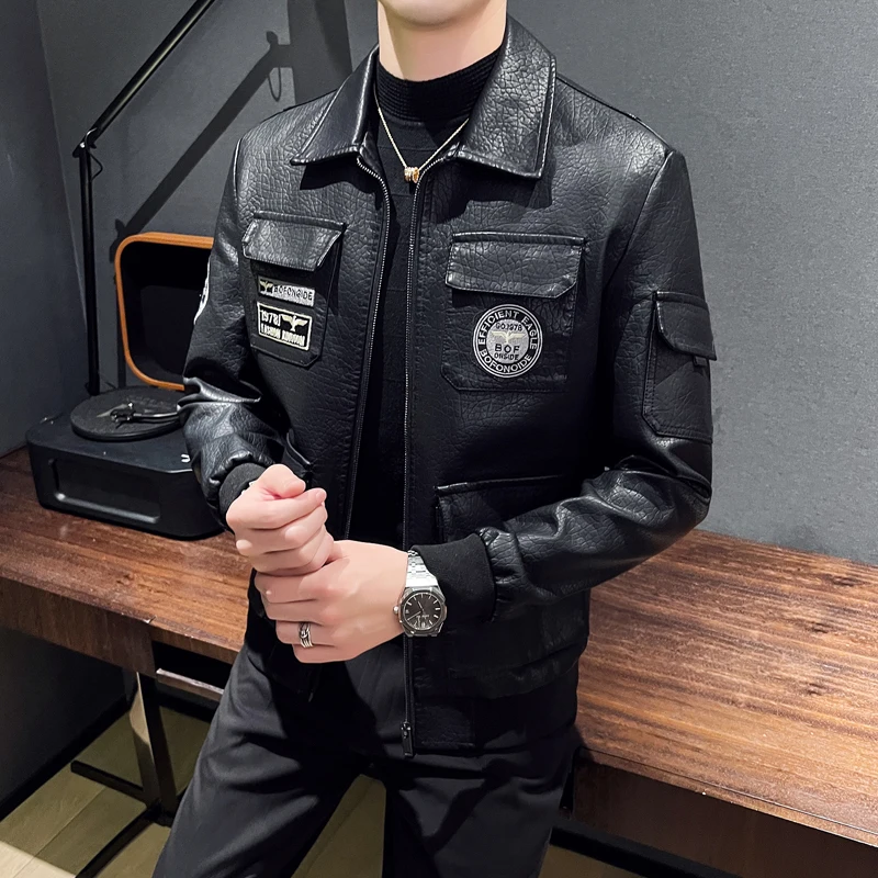 Herbst Winter Luxus Motorrad Leder Jacke Männer PU Jacken Zipper Up Leder Mantel Männer Kl...