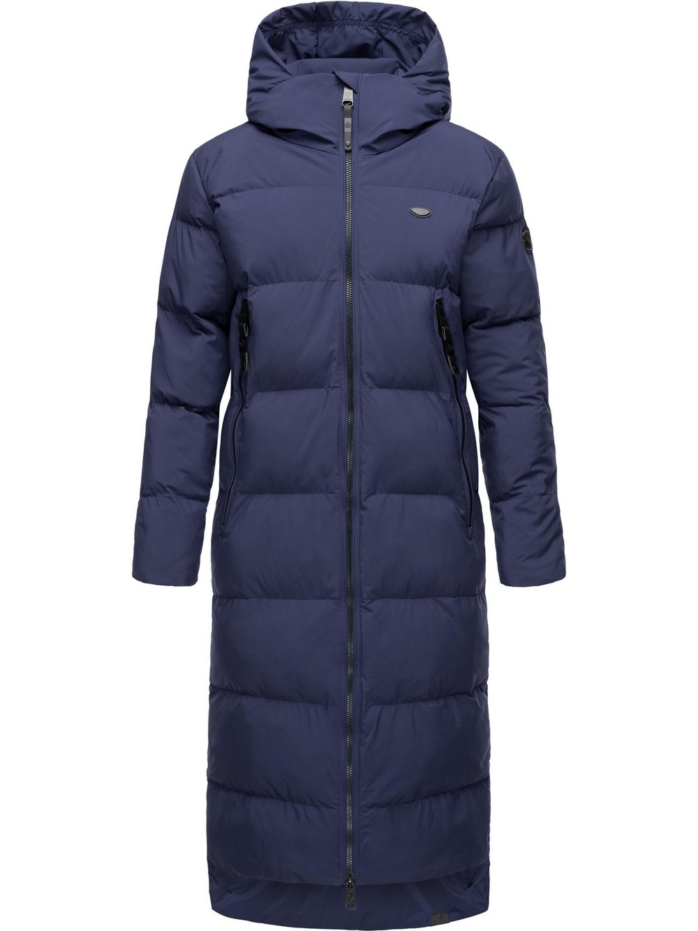 Warme extralange Damen Winterjacke mit breiter Steppung, seitlichen Gehschlitzen und zahlreiche Deta...