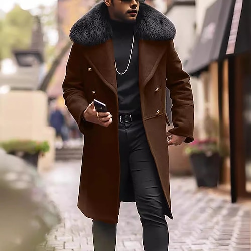Herren Mantel Parka Kunstpelz-Mantel Langer Trenchcoat Regenmantel ...