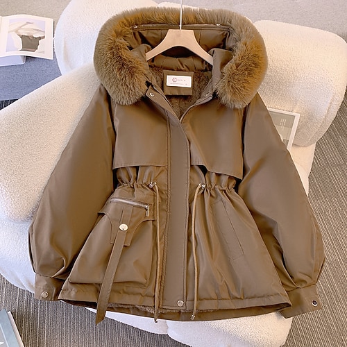 Damen Wintermantel Daunenjacke Kapuzenjacke Winddicht Warm Fellbesa...