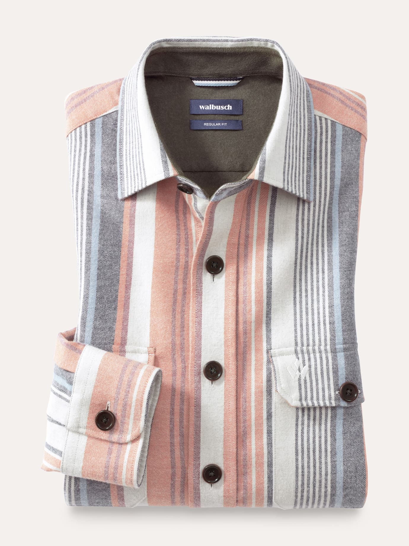Walbusch Herren Doppelflanell Hemd-Jacke Orange gestreift