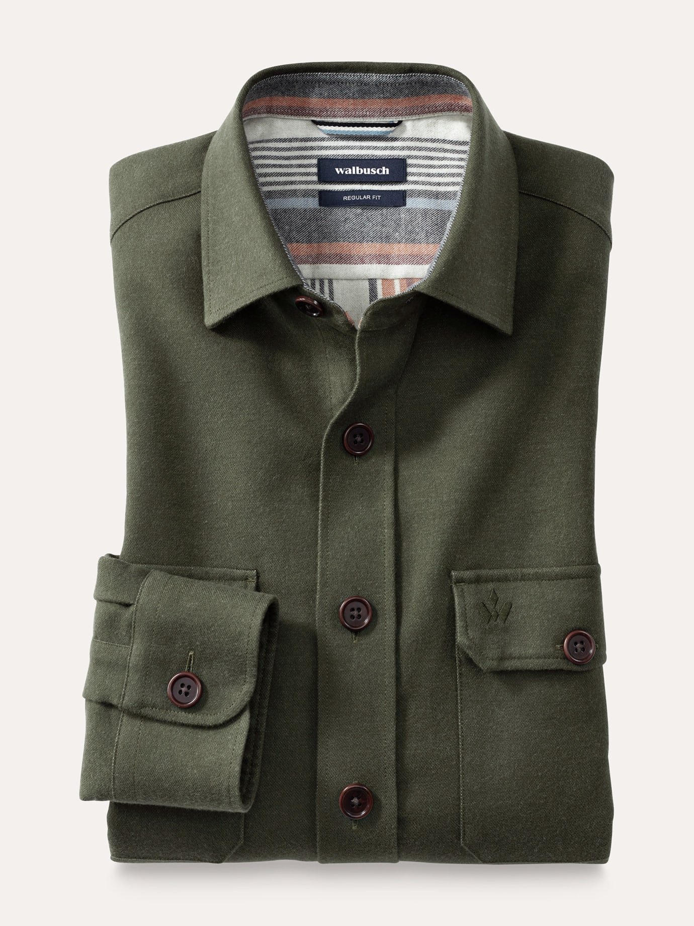 Walbusch Herren Doppelflanell Hemdjacke Grün