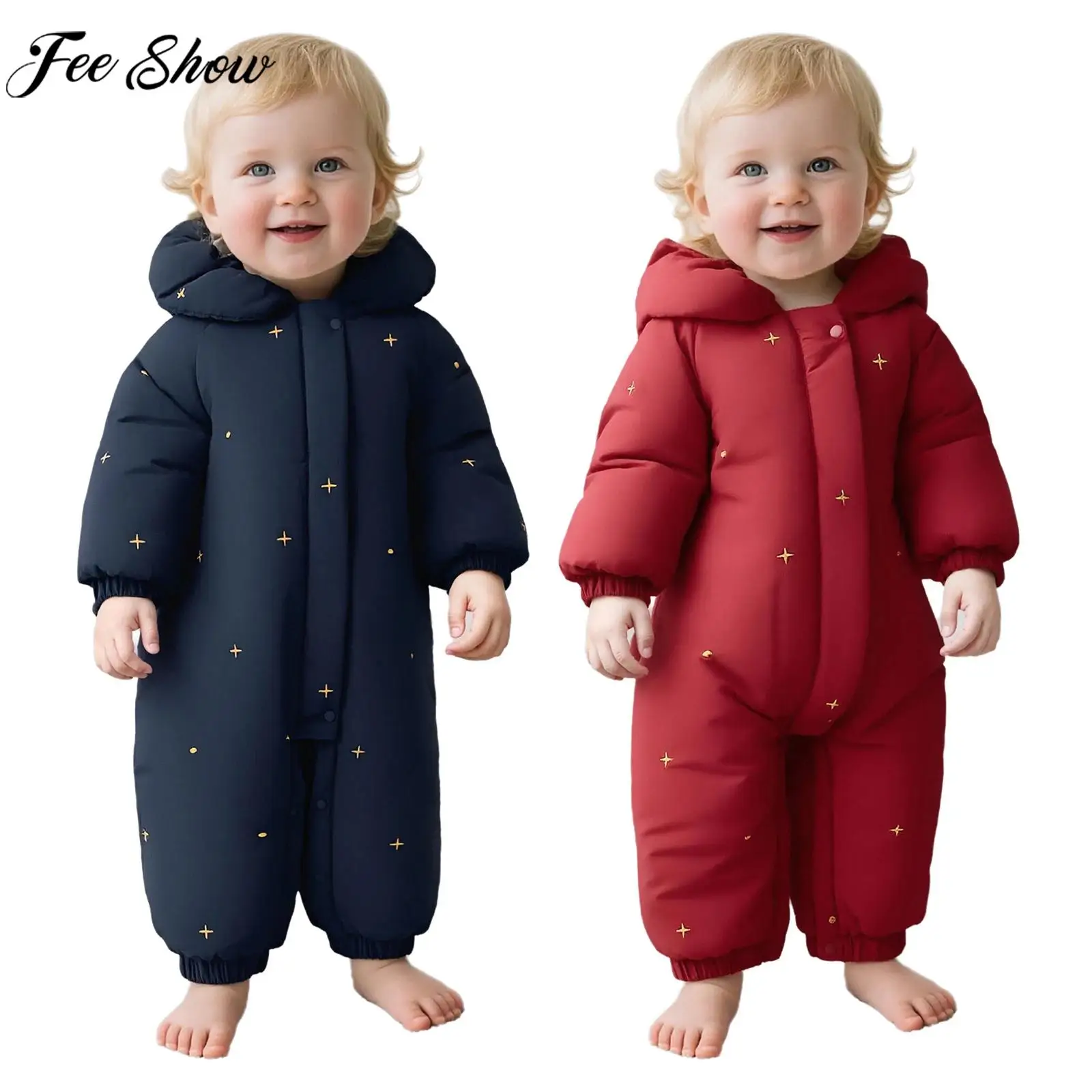 Kleinkind Baby Winter Warme Baumwolle gefütterte Kapuzen Strampler Schneeanzug Langarm Print Zi...