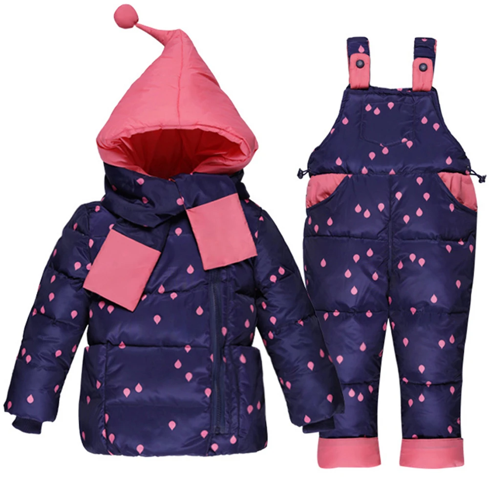 Weiße Entendaunen-Skianzüge für Kinder, Winter-Pufferjacke mit Kapuze, Schneehose, 2...