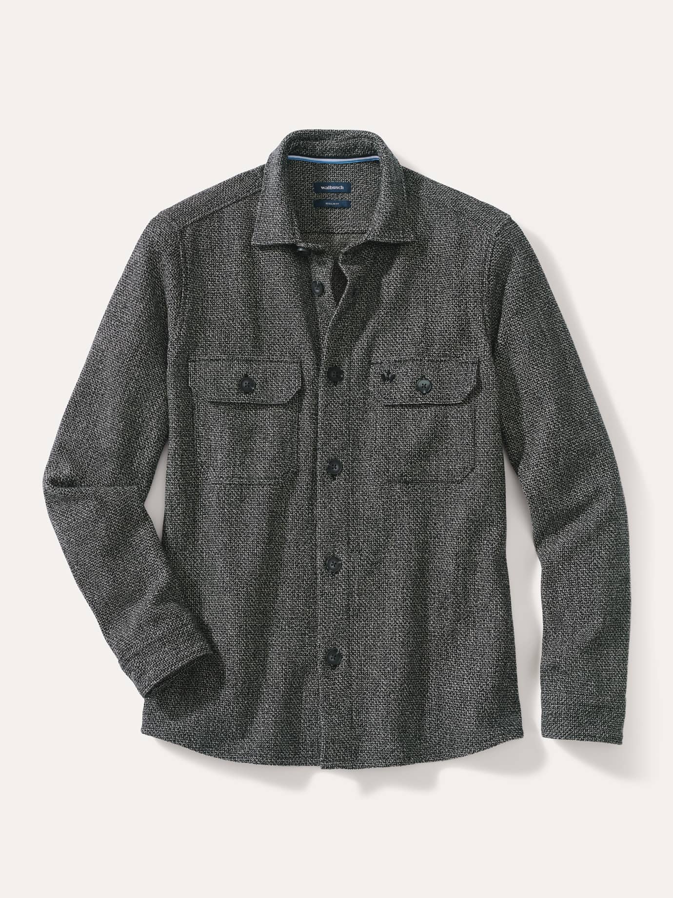 Walbusch Herren Hemd-Jacke Woll-Mix Schwarz