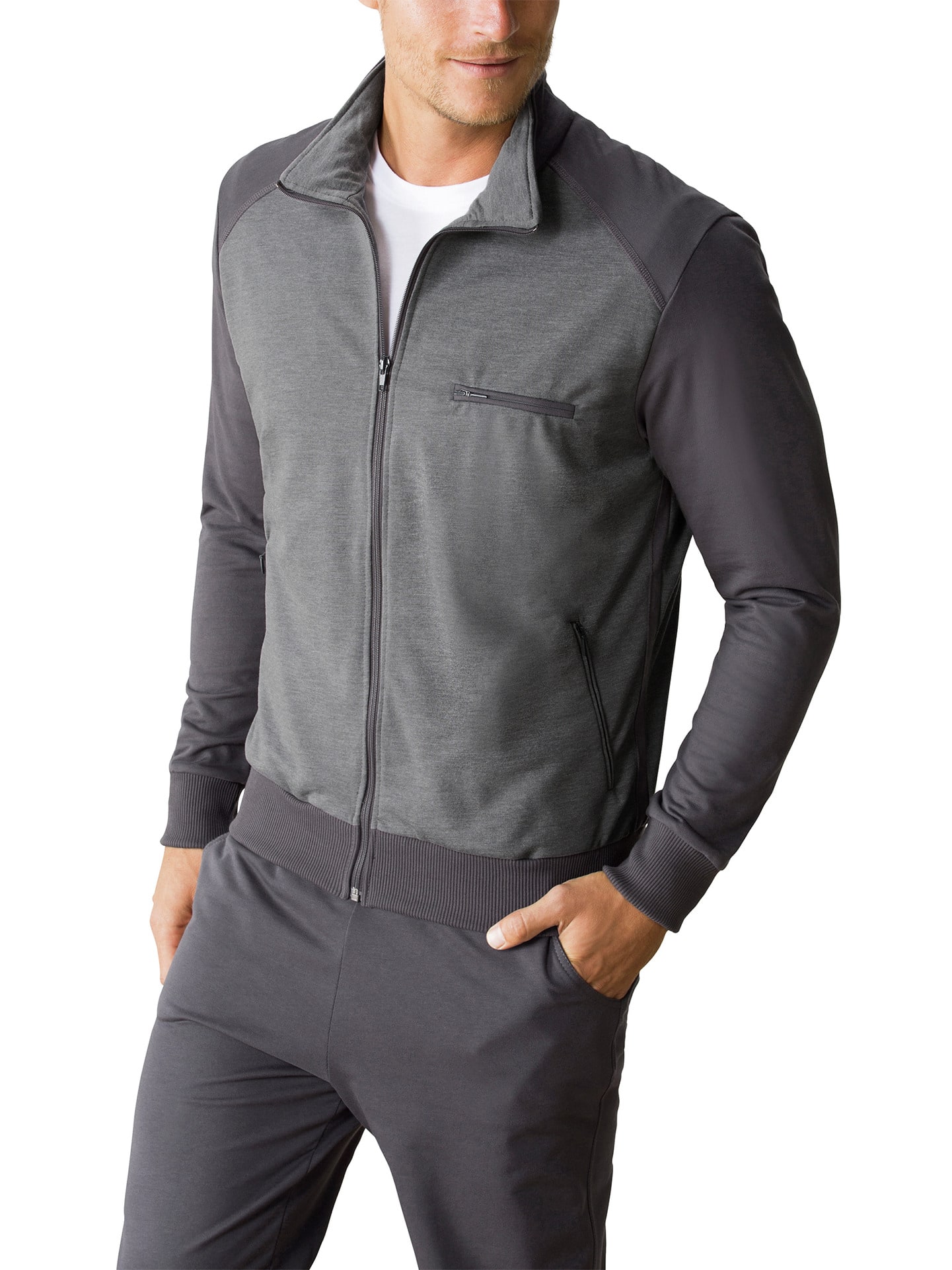 Die optisch bewusst schlicht gehaltene Freizeitjacke wurde aus feinem Gewirk mit hohem Baumwollantei...