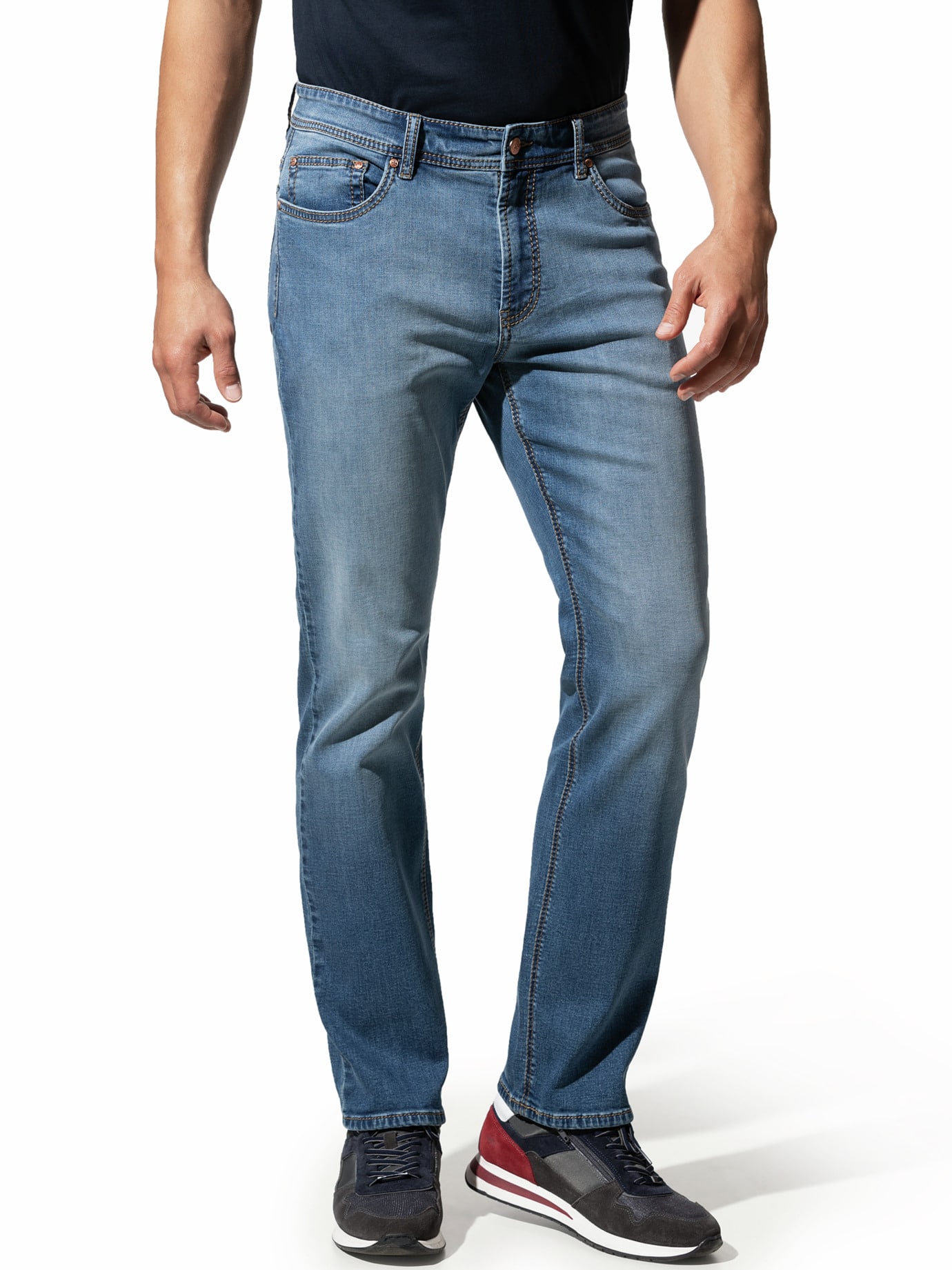 Walbusch Herren Jeans-Hose Sattlerstich Blau