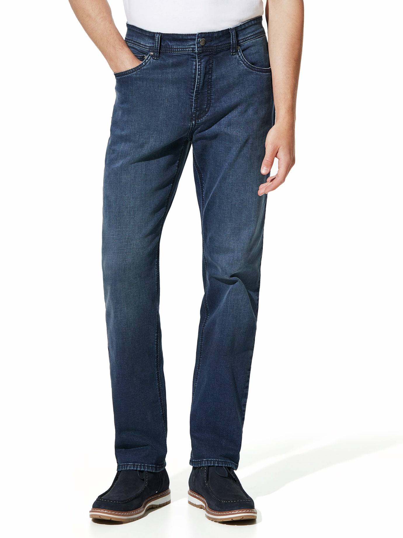 Komfortable Herren-Stretch-Jeans der Marke Arizona. Mit geradlinig verlaufendem Hosenbein sowie nied...