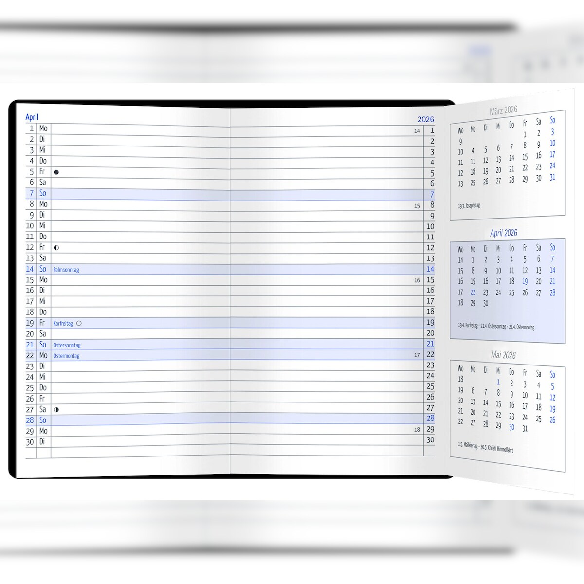 2026 Güss Trio-Timer PVC schwarz 54 Seiten Kalendarium deutsch 2-farbiger Druck Schulferien&uum...