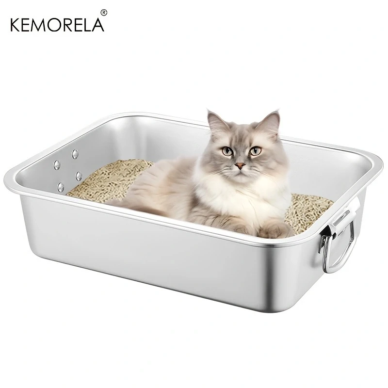 Großes Katzentoilette mit Griffen, langlebige Katzentoilette aus Edelstahl, geräumiges De...