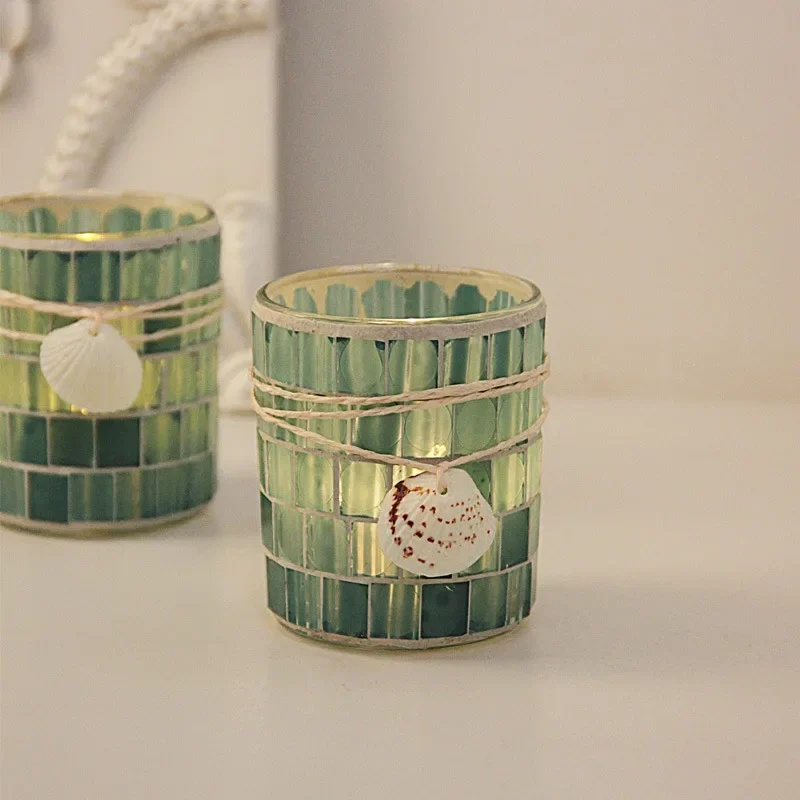 Hot Selling New Mediterranean Shell Mosaic Candle Holder Glass Candle Cup Decorative Candle Holder L...