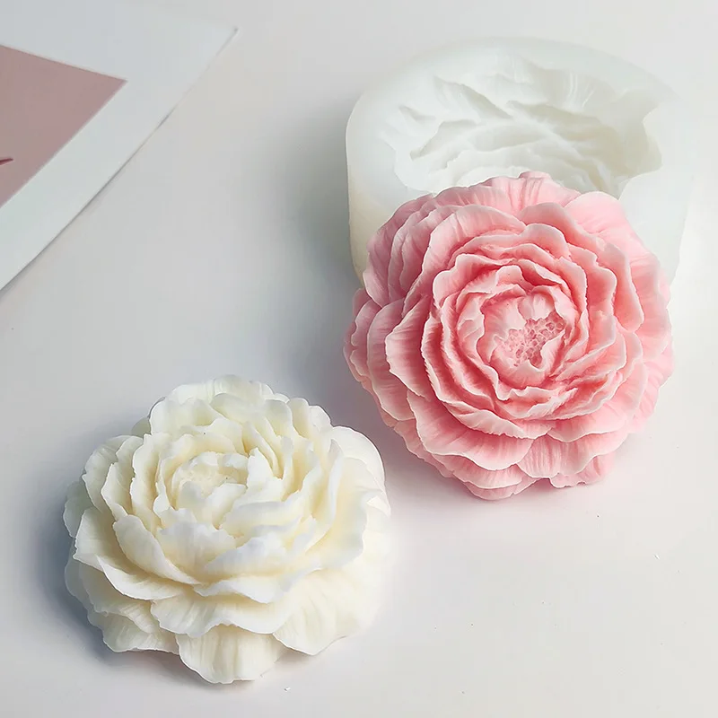 Pfingstrose Silikon Kerzen form Aroma Gips Seife Harz Blumen form Geburtstag Urlaub Geschenk Hochzei...