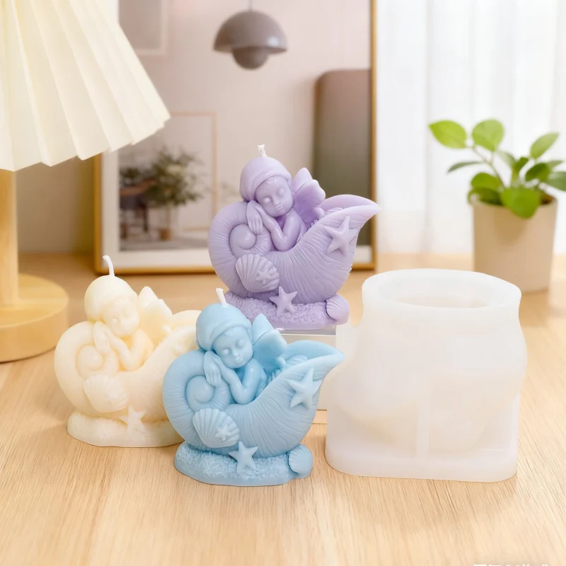 3D Schlafen Schnecke Engel Silikon Kerze Form DIY Conch Engel Relief Shell Seestern Epoxidharz Gips ...