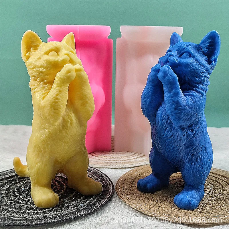 14 cm Größe Stehende Katze Kerze Silikon Form 3D Tier Katze Duftkerze Gips Harz Gussform ...