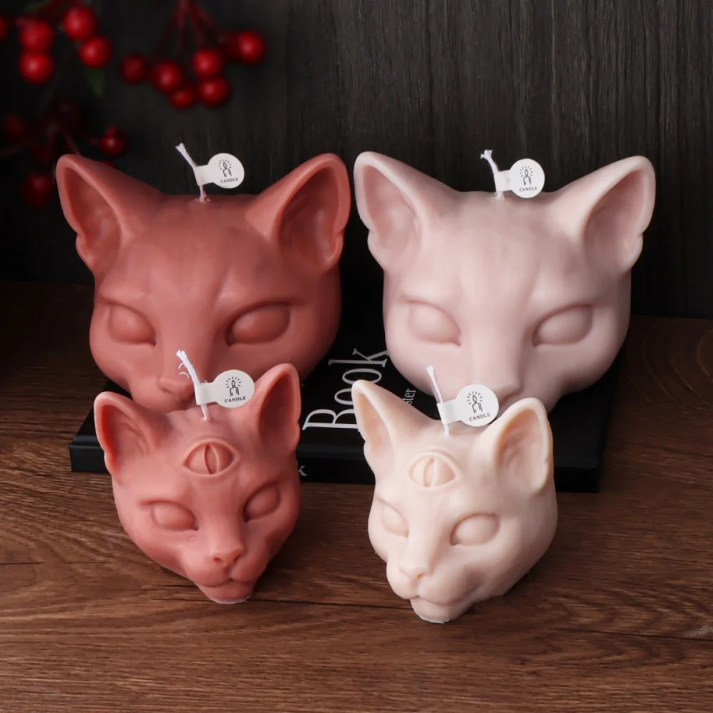 3D handgemachte Tier drei Augen Katze Kopf Silikon Kerze Form DIY K...