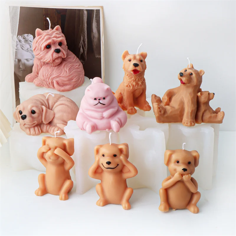 3D Tier Katze Hund Silikon Kerze Form sitzende fette Katze sehen ke...