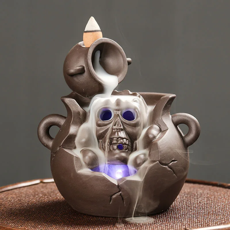 1pc Lila Ton Rückfluss Weihrauch Brenner Keramik Halloween LED Schädel Design Hause Dekora...