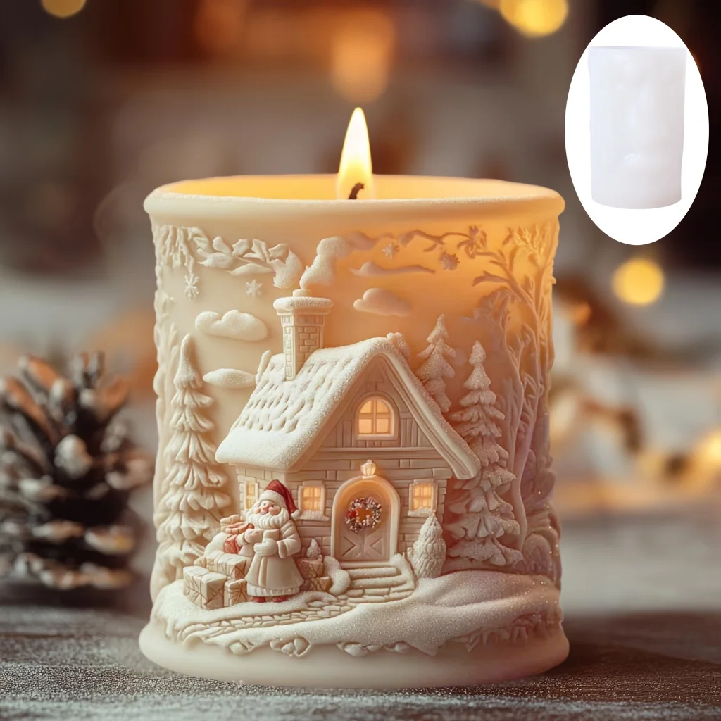 2025 Weihnachtsmann Weihnachtshaus Zylinder Kerze Silikonform Weihnachtsmann Geschenk Schloss Relief...