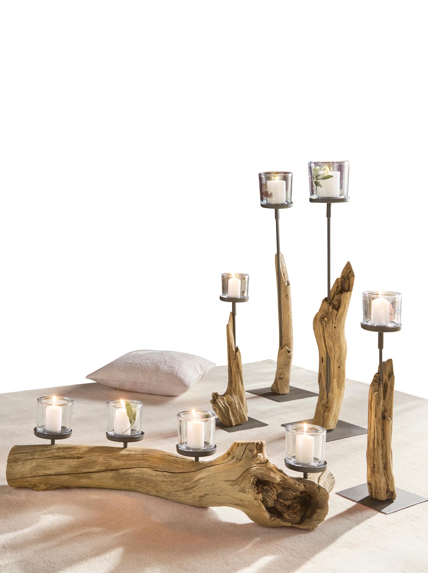 Kerzenleuchter Aus recyceltem Holz, Metallhalterung braun lackiert. Windlichteinsatz aus Glas, H/&os...