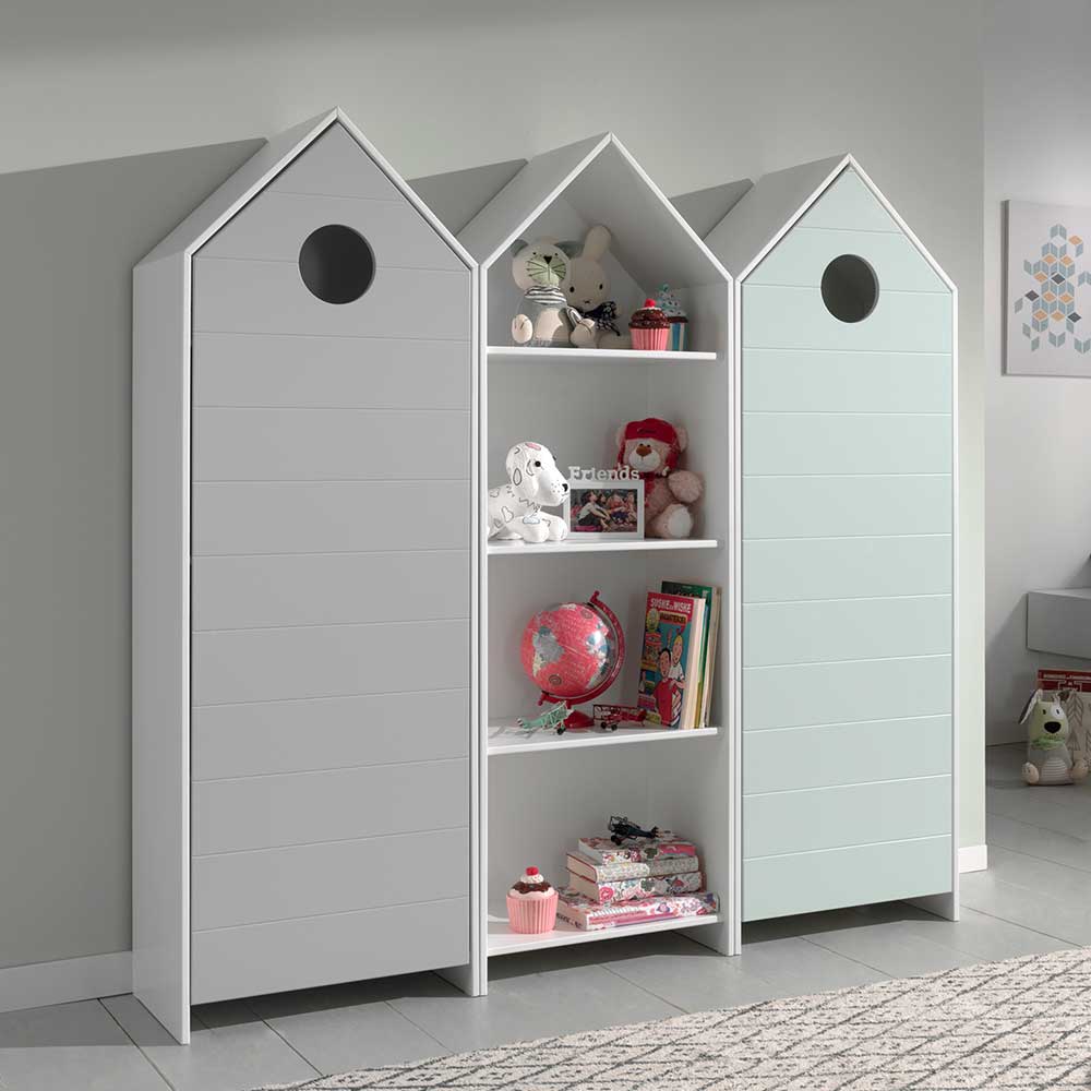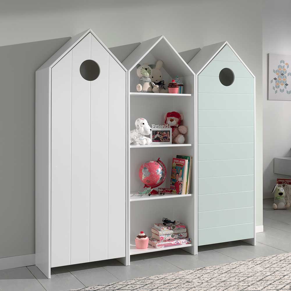 Kinderzimmer Schränke in Weiß und Mingrün weißem Regal (dreiteilig) - Mit drei...