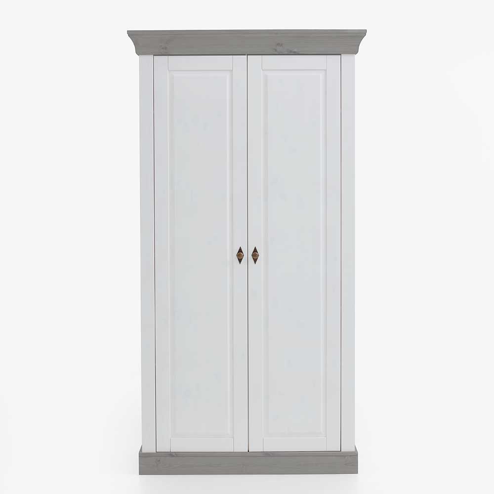 Massivholz Babyzimmerschrank in Weiß und Grau Kiefer