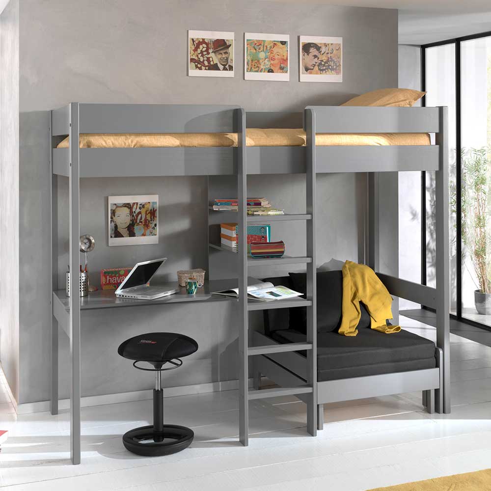 Kinderzimmermöbel Set in Grau Kiefer Massivholz (zweiteilig)