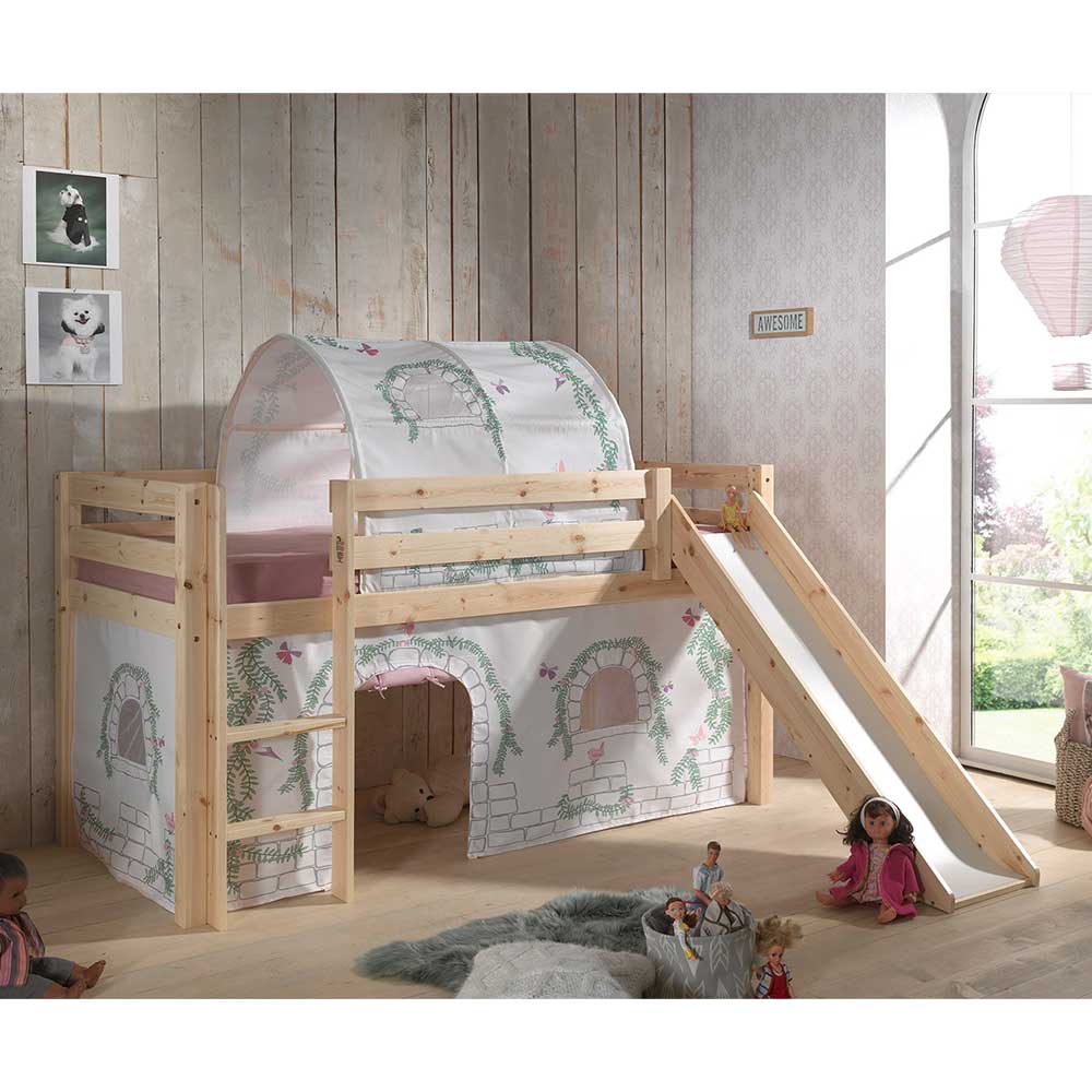 Hochbettgestell aus Kiefer Massivholz Vorhang