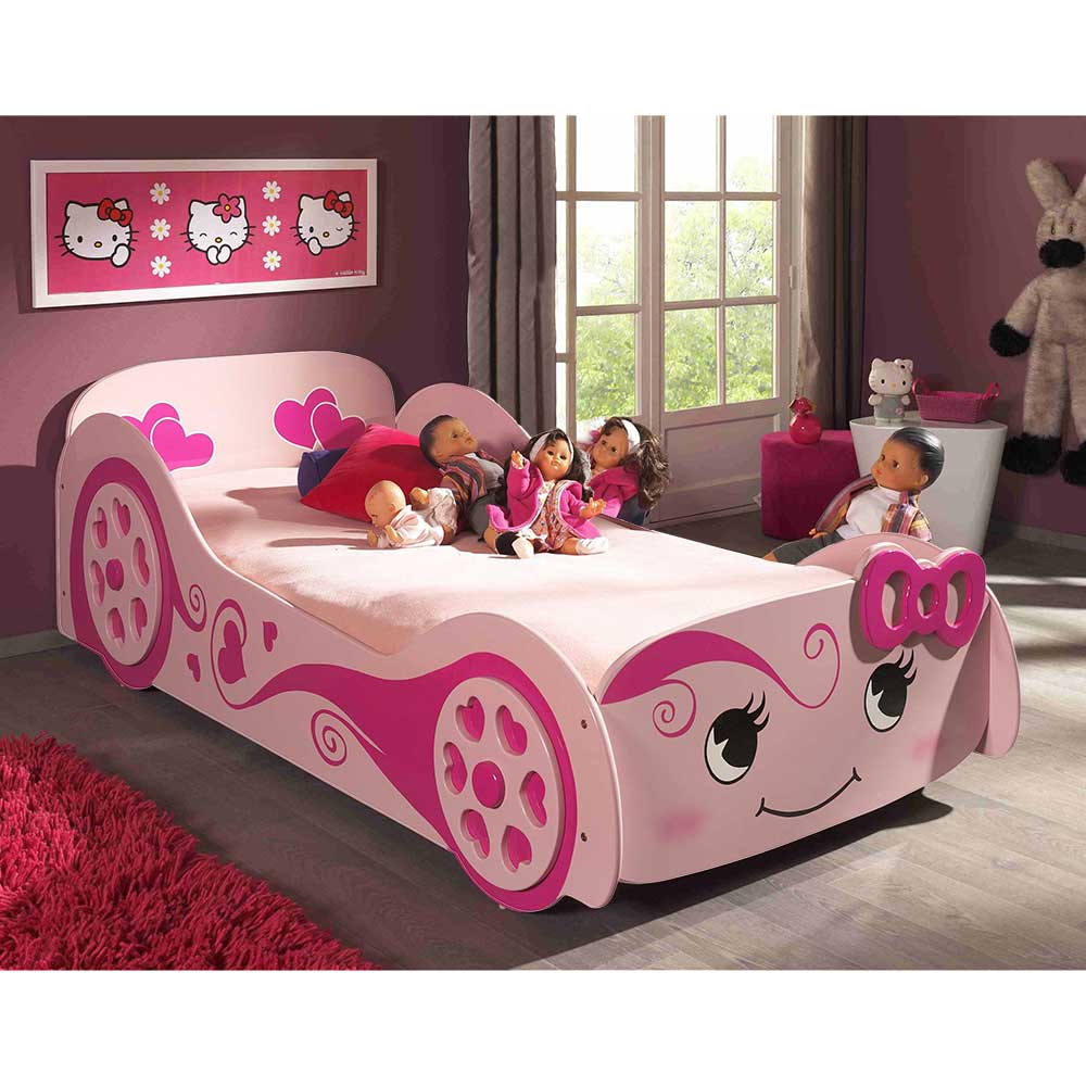 Rennautobett Pink Rosa 101 cm breit 213 cm tief - In Auto Form - Mit einer Liegefläche - Einleg...