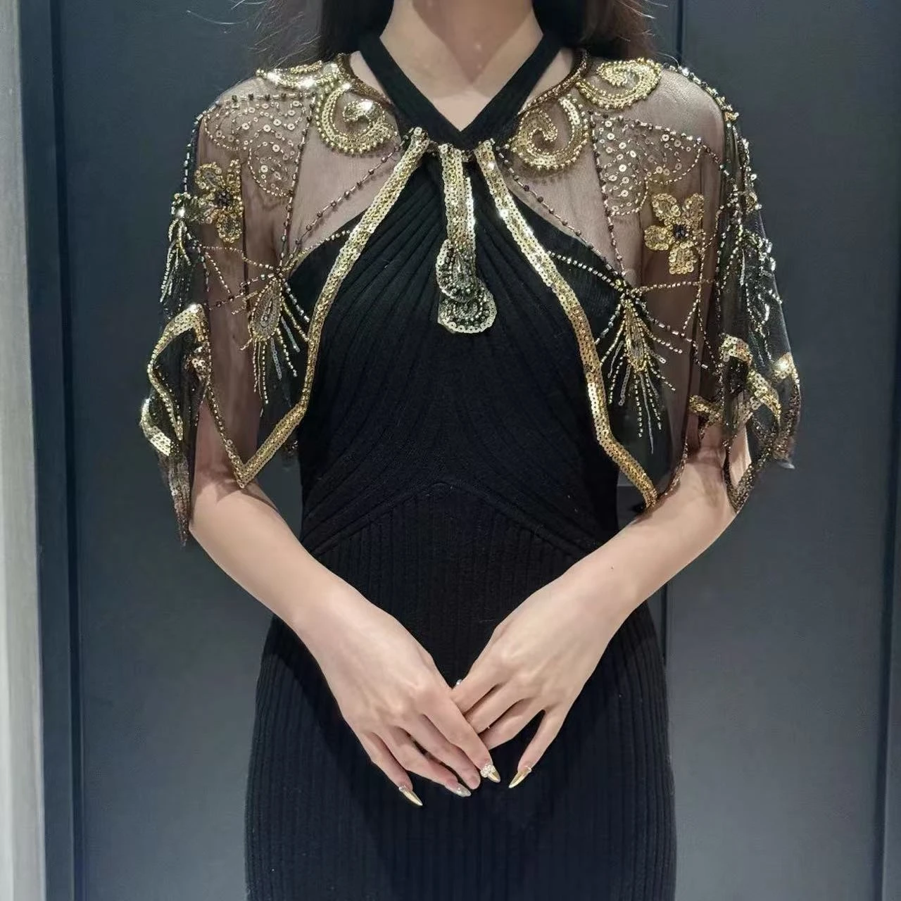 Vintage 1920er Jahre Flapper Schal Pailletten Perlen Kurzer Umhang Neuer schwerer handgemachter Pail...