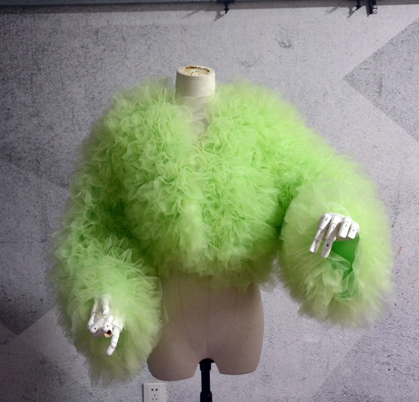 Luxus Tüll geschwollene lange Ärmel Tüll Geburtstags feier Top Overlay Blazer Rü...