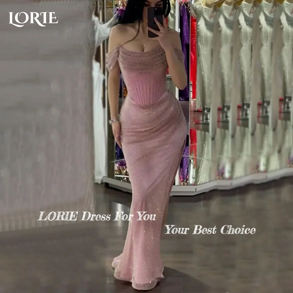 LORIE Schlitz Tüll Arabia Abendkleid Glänzende Falten Bodenlangen Meerjungfrau Ballkleider...