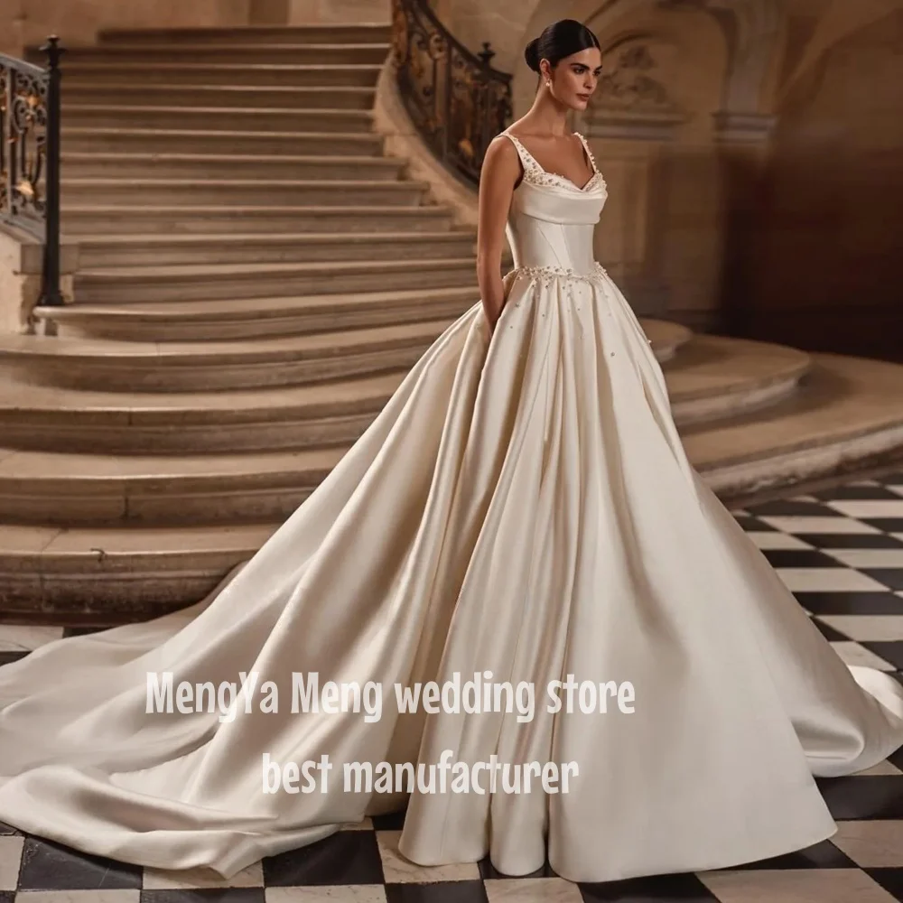ZHUISHU Perlen A-linie Hochzeit Kleid Spaghetti-trägern Braut ...