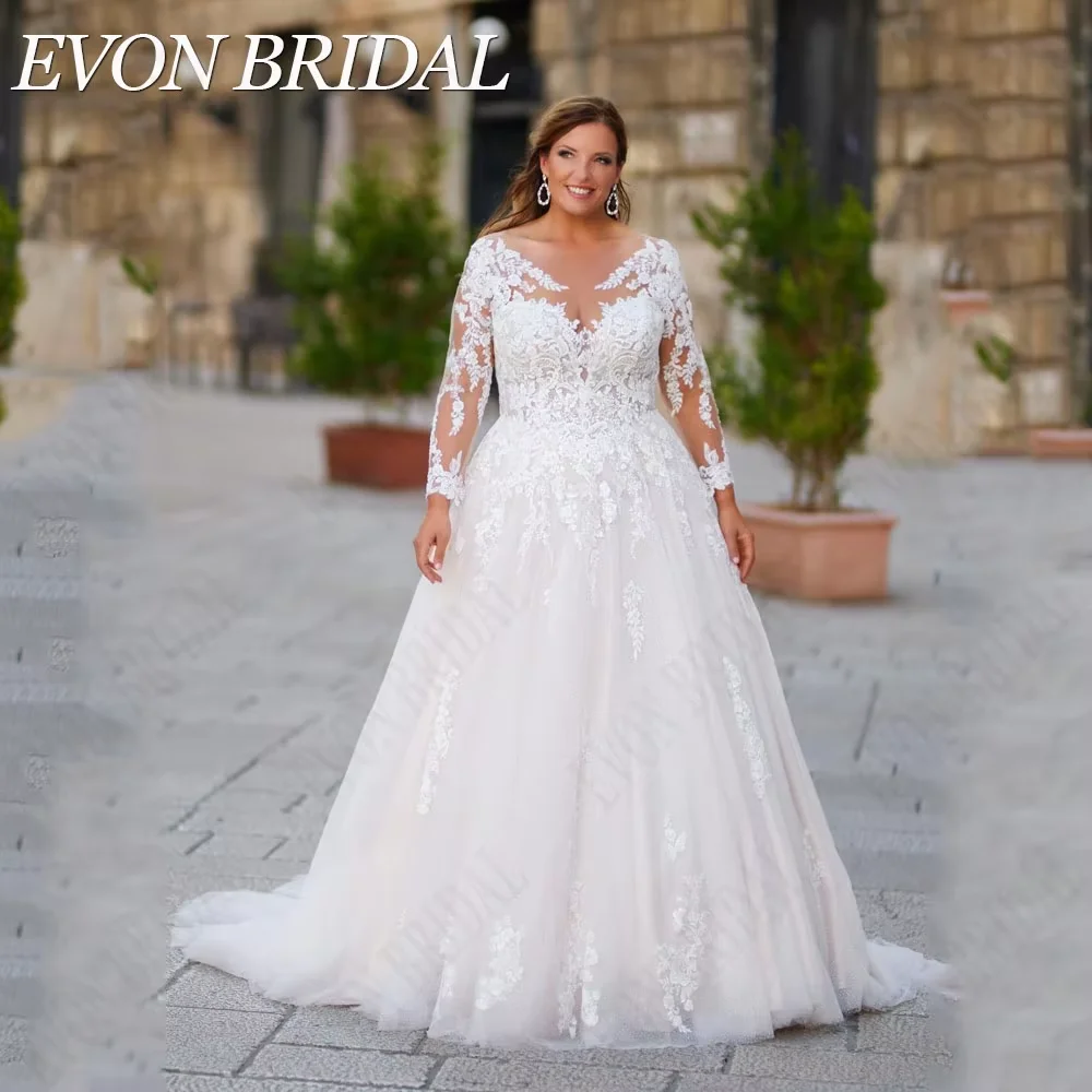 Evon Braut Luxus Plus Size Brautkleider für Braut Langarm Applique U-Ausschnitt Vestidos de Nov...