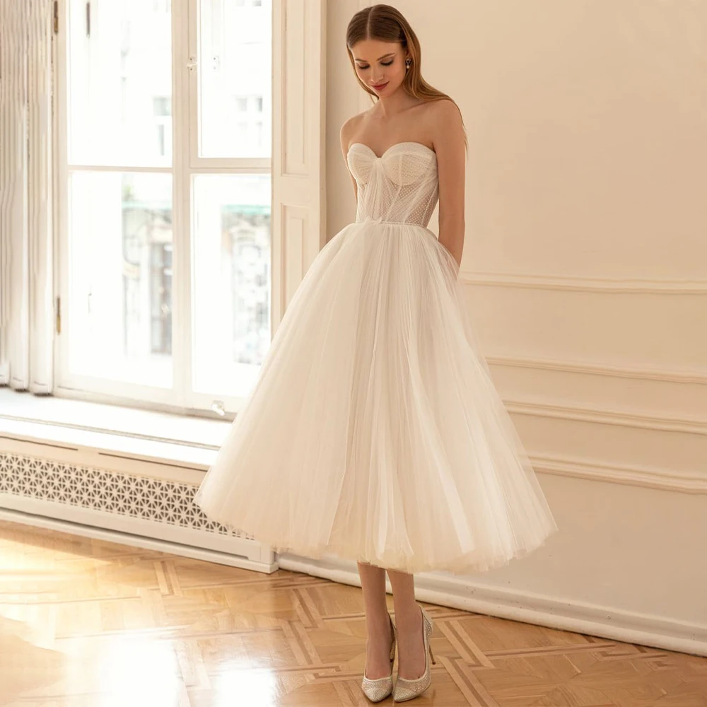 Kurzes Hochzeits kleid für die Braut eine Linie Schatz ärmellose Prinzessin Kleid Midi wei...