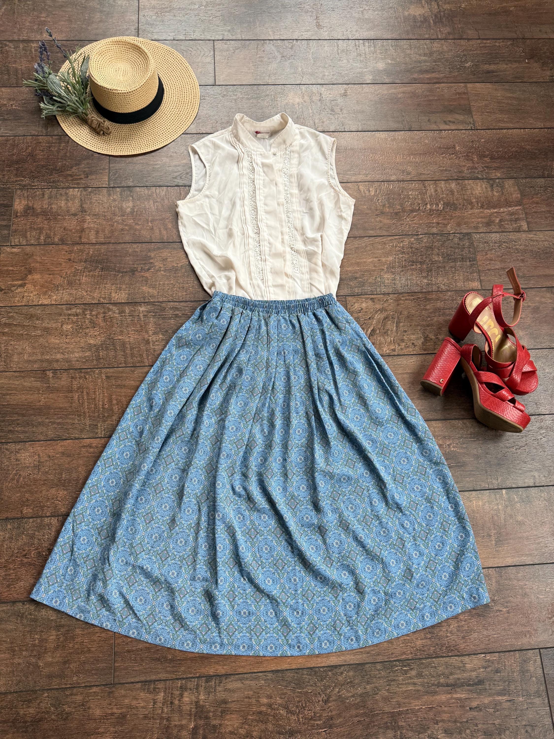Vintage 90er Hellblauer Faltenrock, Vintage 90er Midirock, Hellblau...