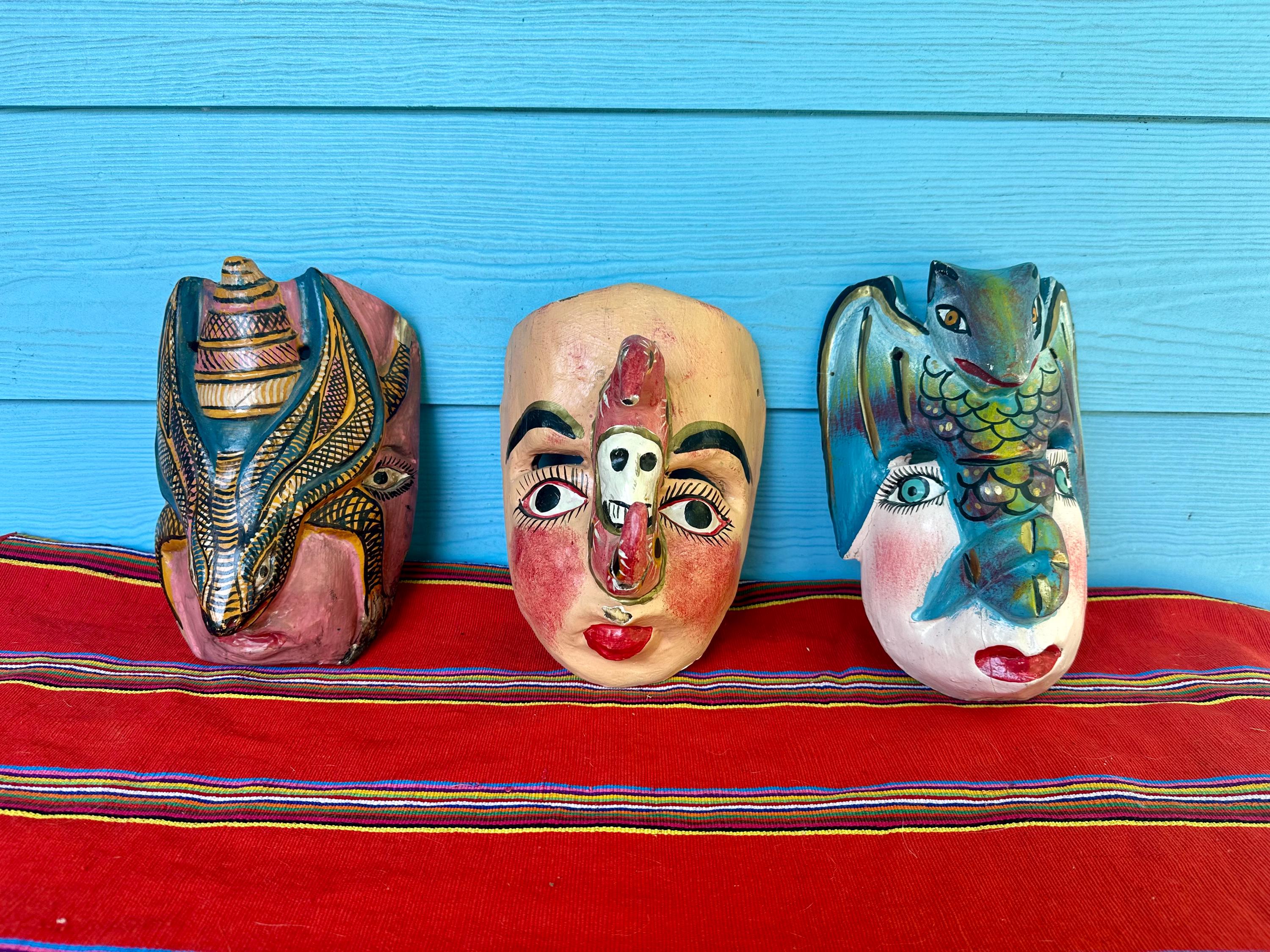 Vintage guatemaltekische Masken, mexikanische Maske, Volkskunstmask...