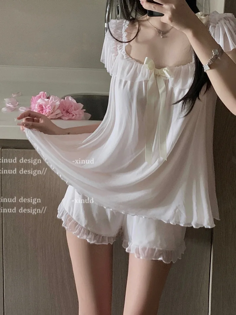 Hochwertiges Set Französisch Süße Schleife Strap Sommer Prinzessin Mädchen Stil...