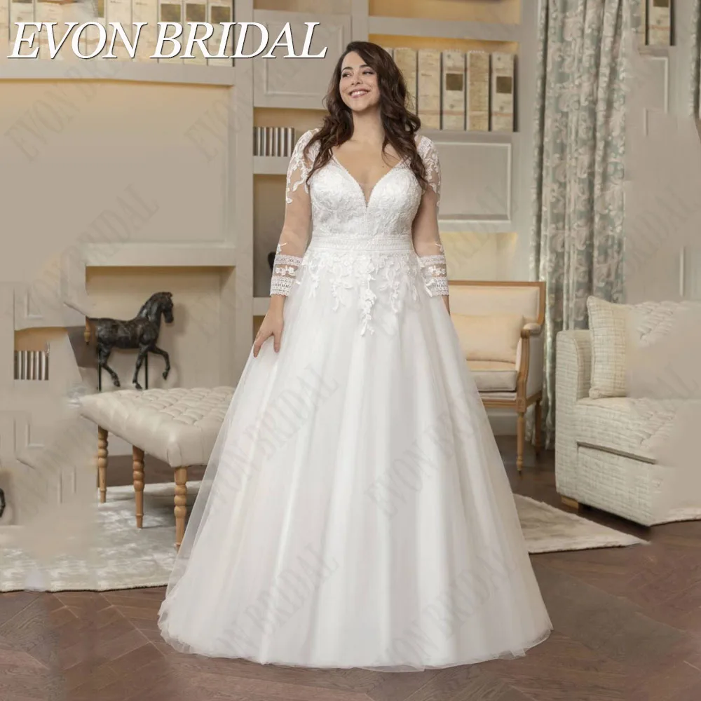 EVON BRIDAL Oversize Brautkleid Lange Ärmel V-Ausschnitt Appli...