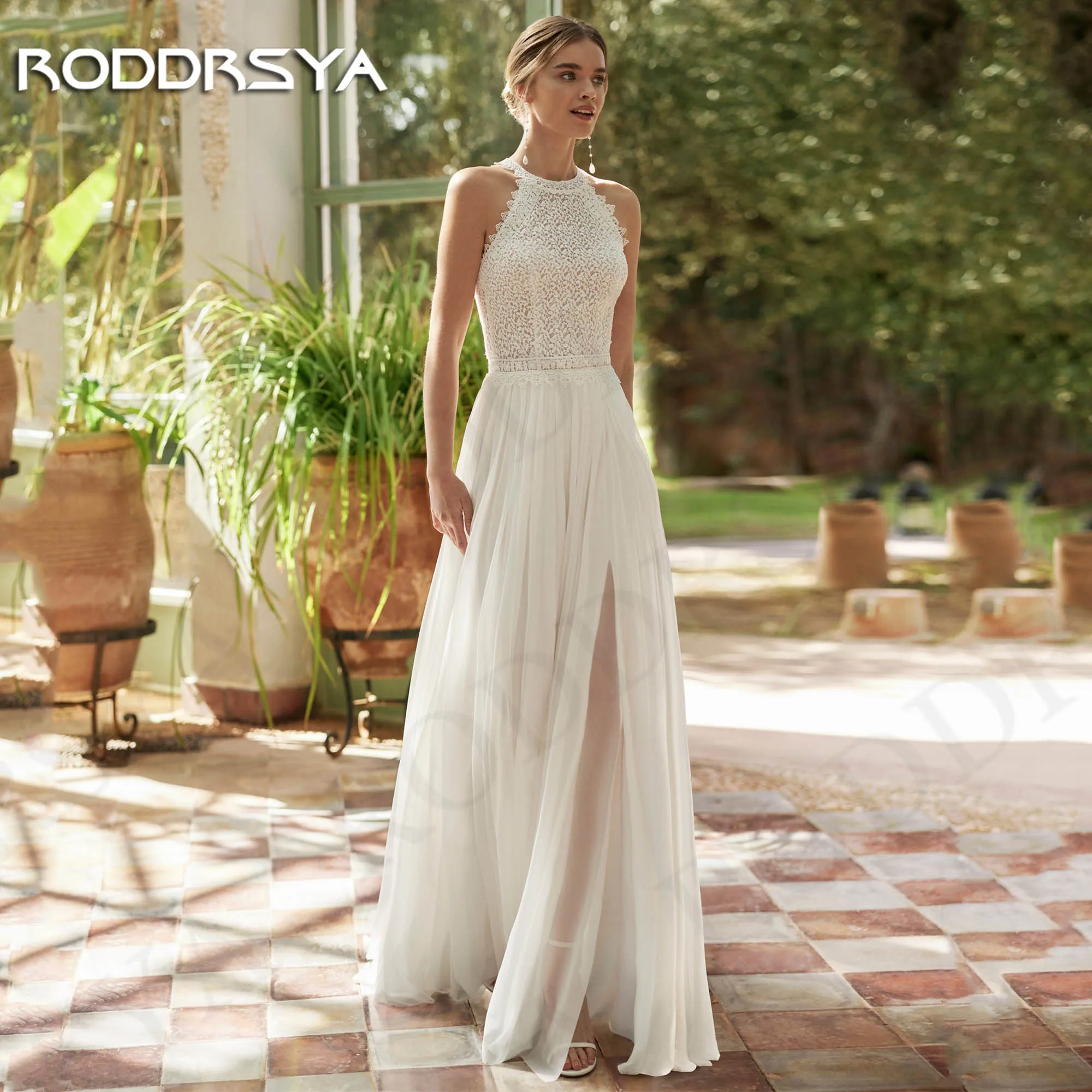 Roddrsya Chiffon ärmellose Boho Brautkleid Strand schicke Spitze eine Linie Brautkleid Zivil Sp...