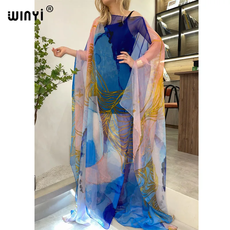 Europa Bech Übergröße Sommermode Druck 2022 WINYI Kaftan Robe sexy Femme Maxi Damenr...