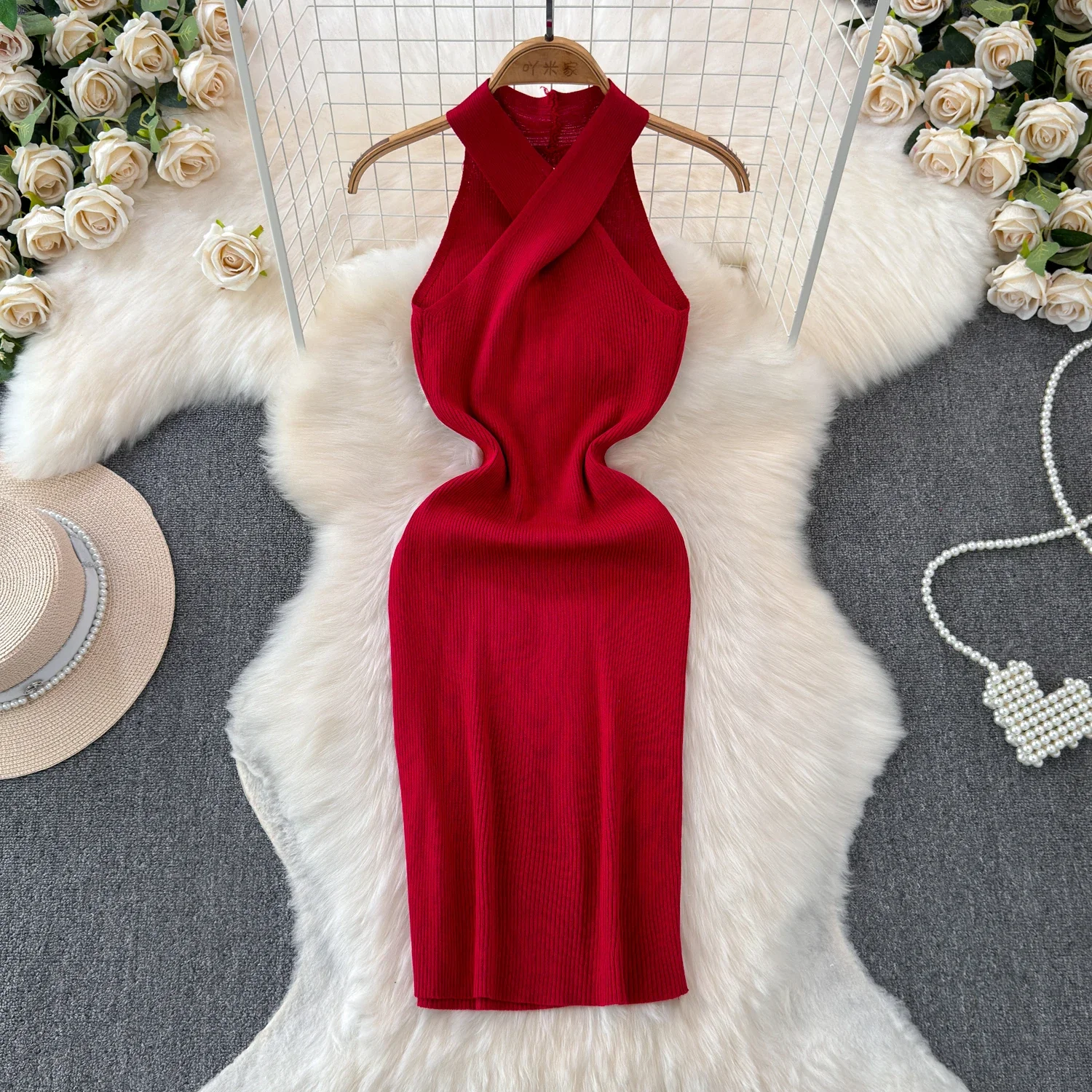 Solide 2024 gekreuzte Frauen Kleid Sommer Riemen ärmelloses figur betontes Kleid Europa Stil Ha...