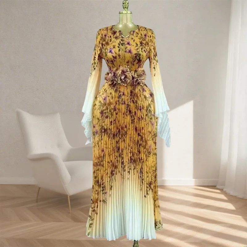 Miyake Afrika Elegantes Kleid frauen Neue Herbst Temperament Luxus Taille Mode Langen Rock Europa Am...