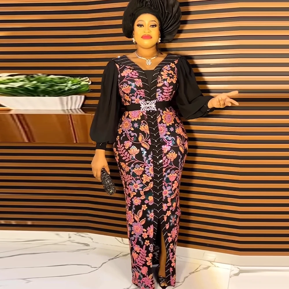 Md dubai afrikanische Luxus Pailletten Kleider Hochzeits feier Frauen Boho Blumen lange Robe Abendkl...
