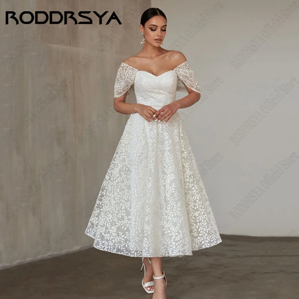 RODDRSYA Luxus-Applikationen-Hochzeitskleid, schulterfrei, A-Linie, Tee-Länge, Brautkleid, herz...