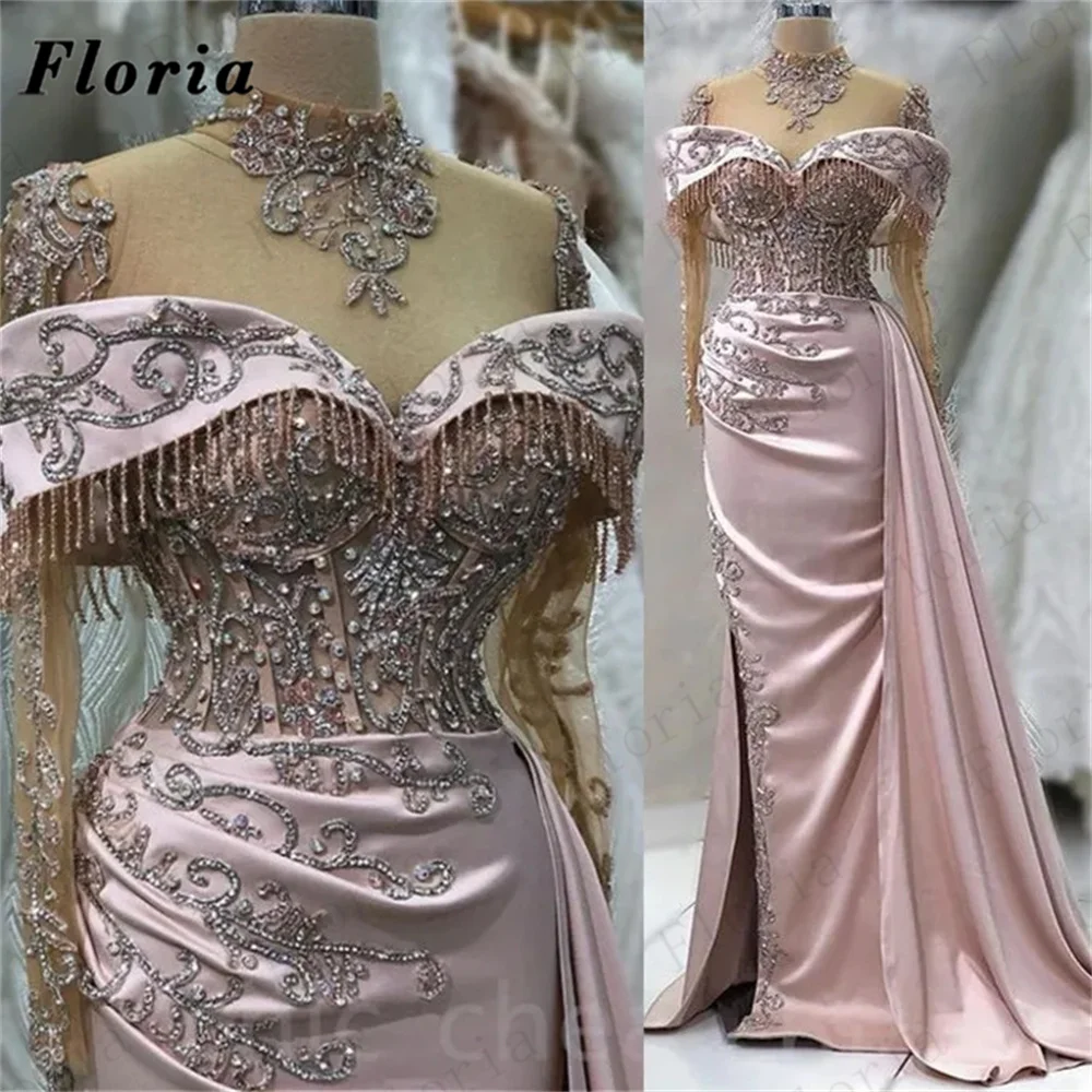 Neueste Dubai Rosa Perlen Abendkleider Stehkragen Nahen Osten Perlen Abendkleid Elegante Dubai Ma&sz...
