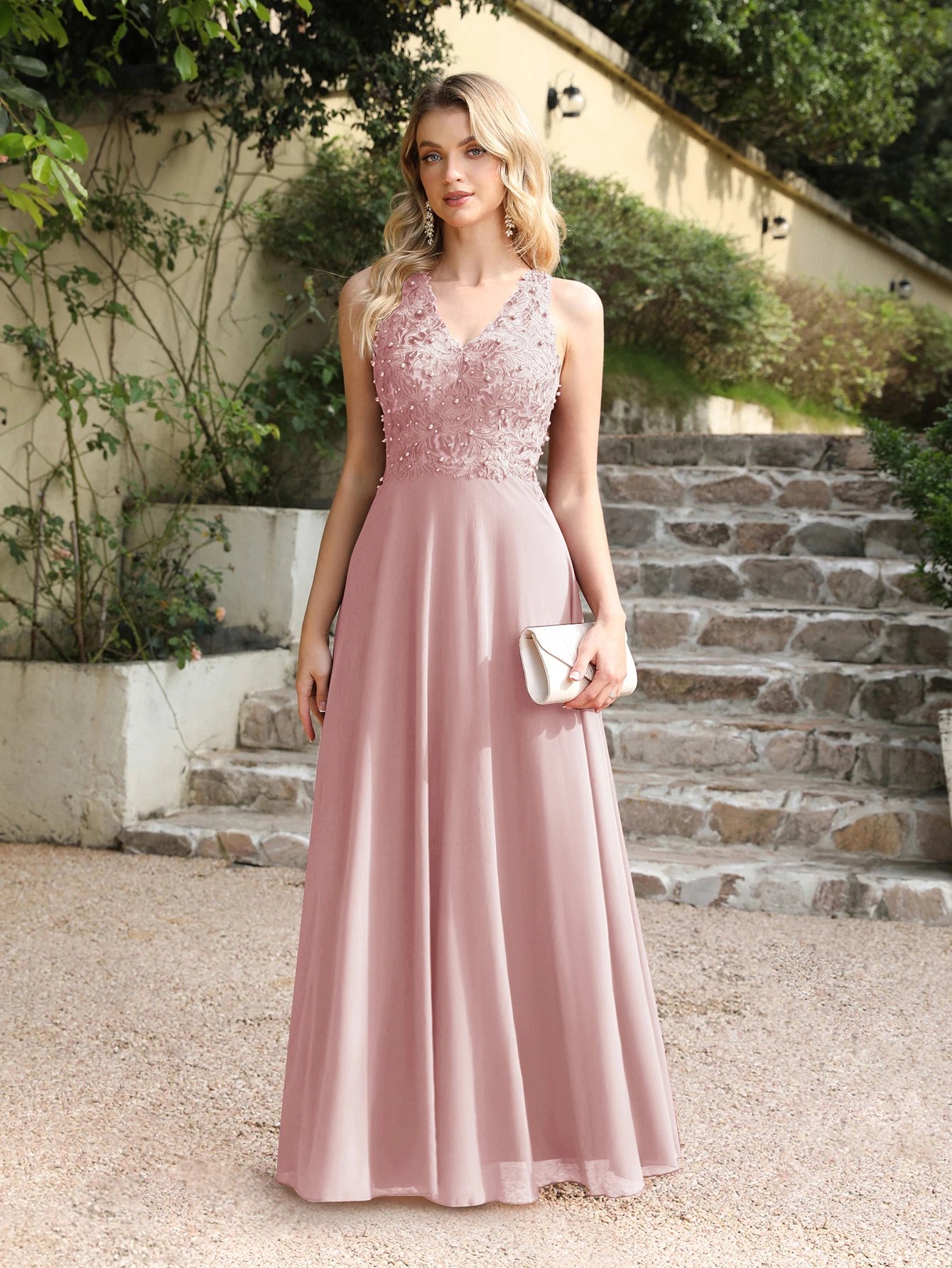 MisShow Sommer-Abendkleider, V-Ausschnitt, Perlen, Spitze, Applikat...